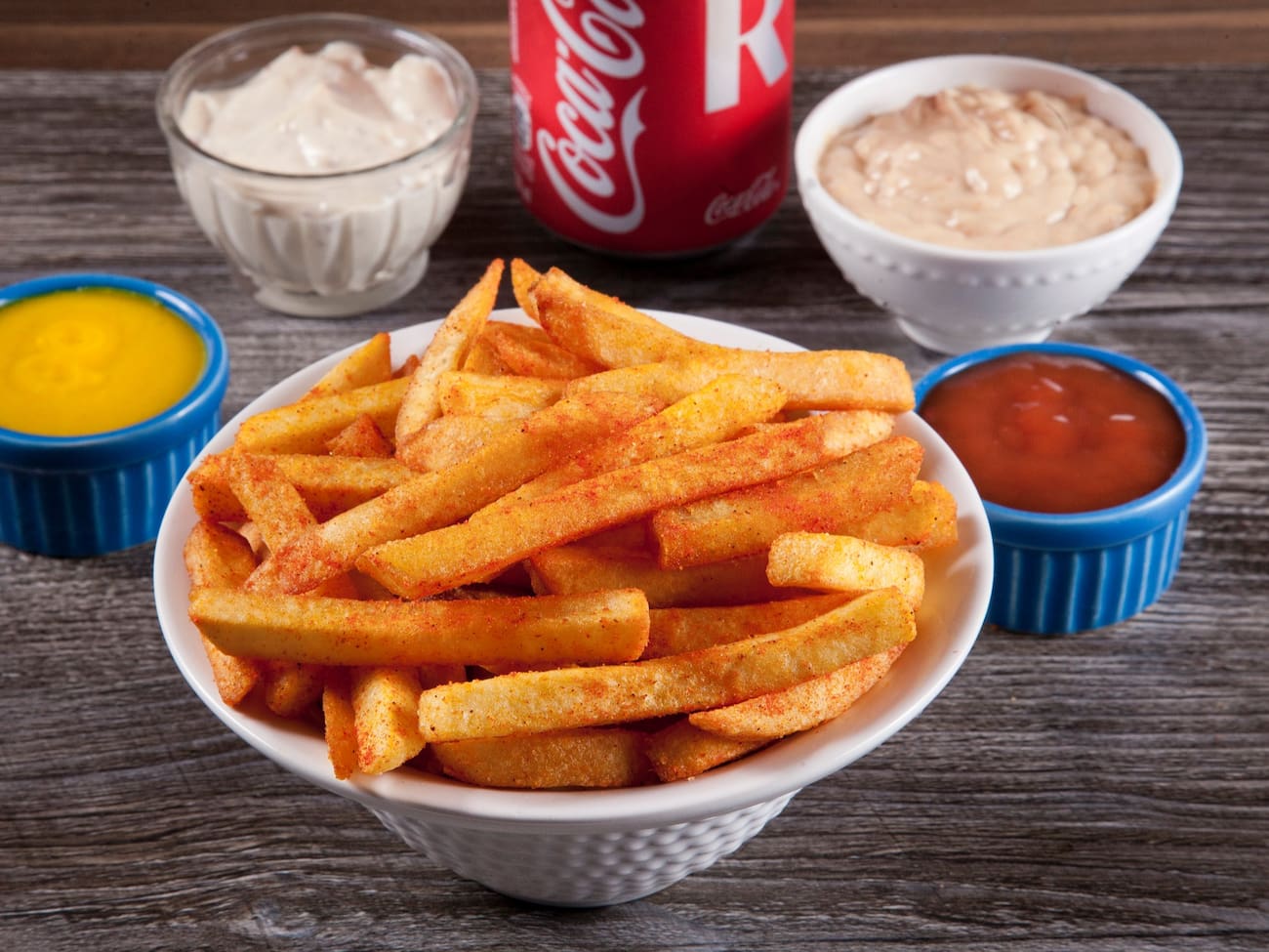 250g de batata palito crocante, coberta com cheddar cremoso e bacon crocante