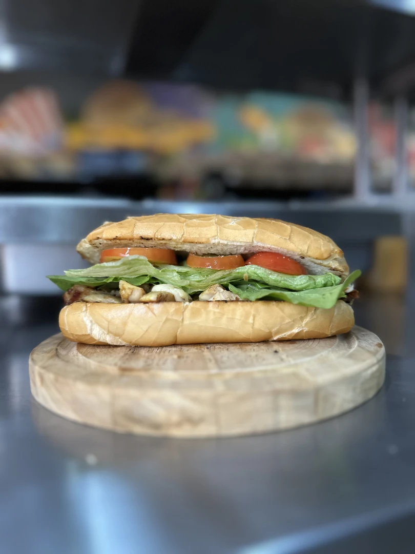 Baguete de 17cm crocante, filé de frango 150g grelhado no ponto certo e mussarela derretida. Acompanhado de cebola roxa, alface fresca, tomate suculento e rúcula.