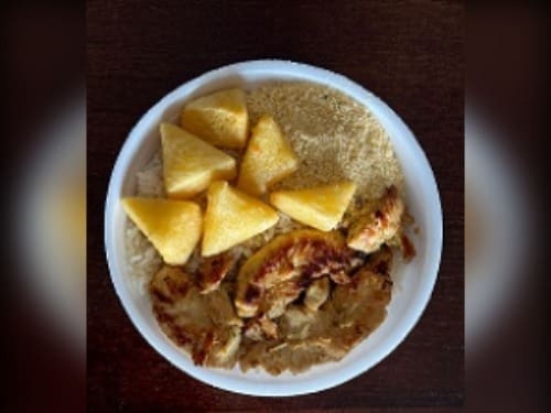 Arroz soltinho, feijão carioca, filé de frango suculento grelhado no ponto, salada fresca e guarnição especial. Uma refeição equilibrada e saborosa, pronta para te surpreender!