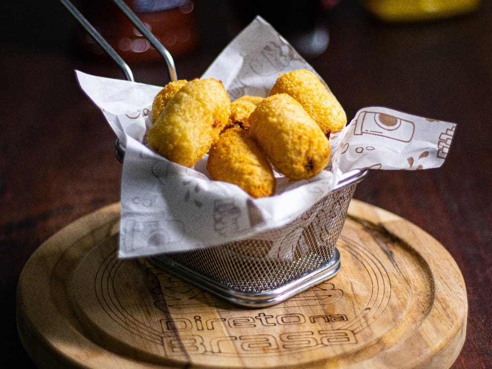 250g de massa de mandioca temperada, crocante por fora e macia por dentro.