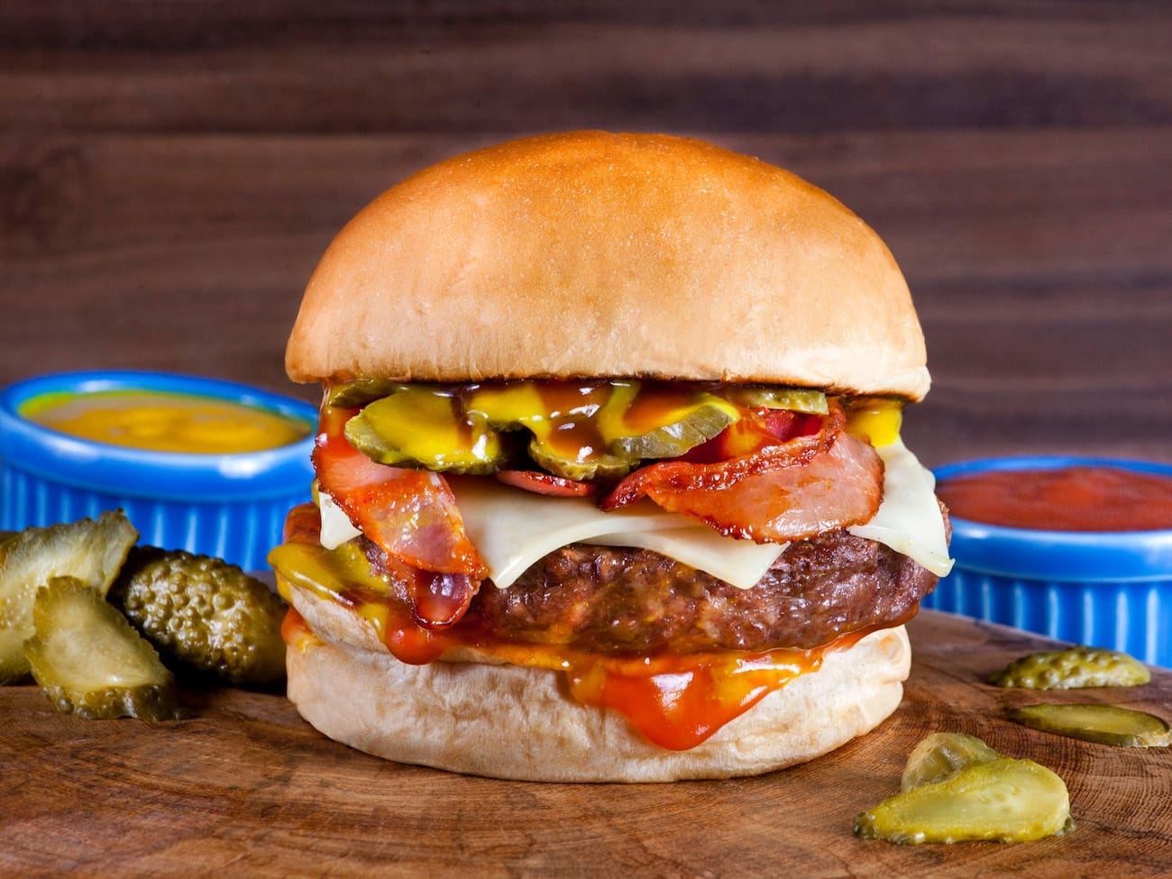 Pão tradicional, hambúrguer suculento 140g, duplo queijo derretido, bacon crocante e picles, finalizado com ketchup e mostarda. O equilíbrio perfeito entre tradição e sabor intenso em cada mordida!