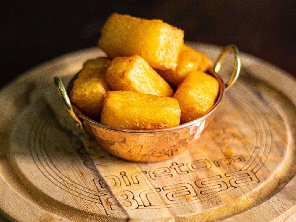 250g de massa de mandioca temperada, crocante por fora e macia por dentro.