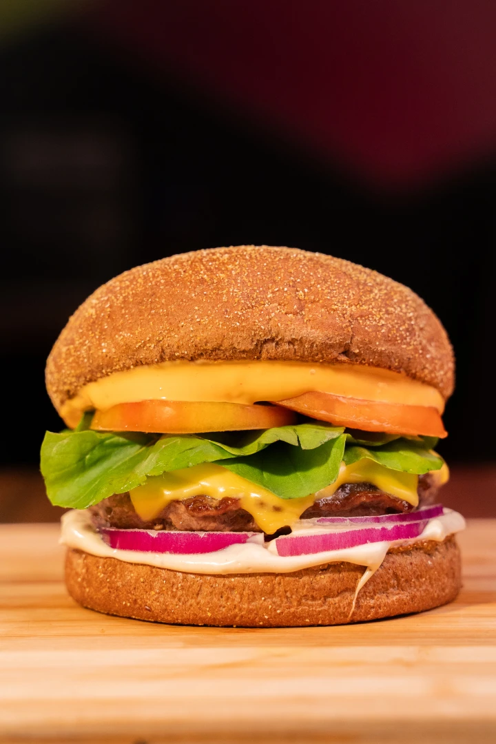 Pão australiano macio, hambúrguer 140g, duplo queijo derretido, rúcula fresca, tomate suculento e cebola roxa crocante, combinados com molho grill e molho americano.