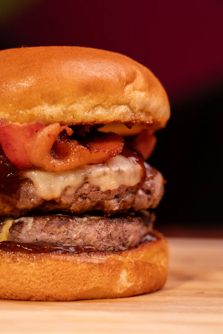 Pão tradicional, dois burgers de 140g, muçarela, bacon e molho barbecue.